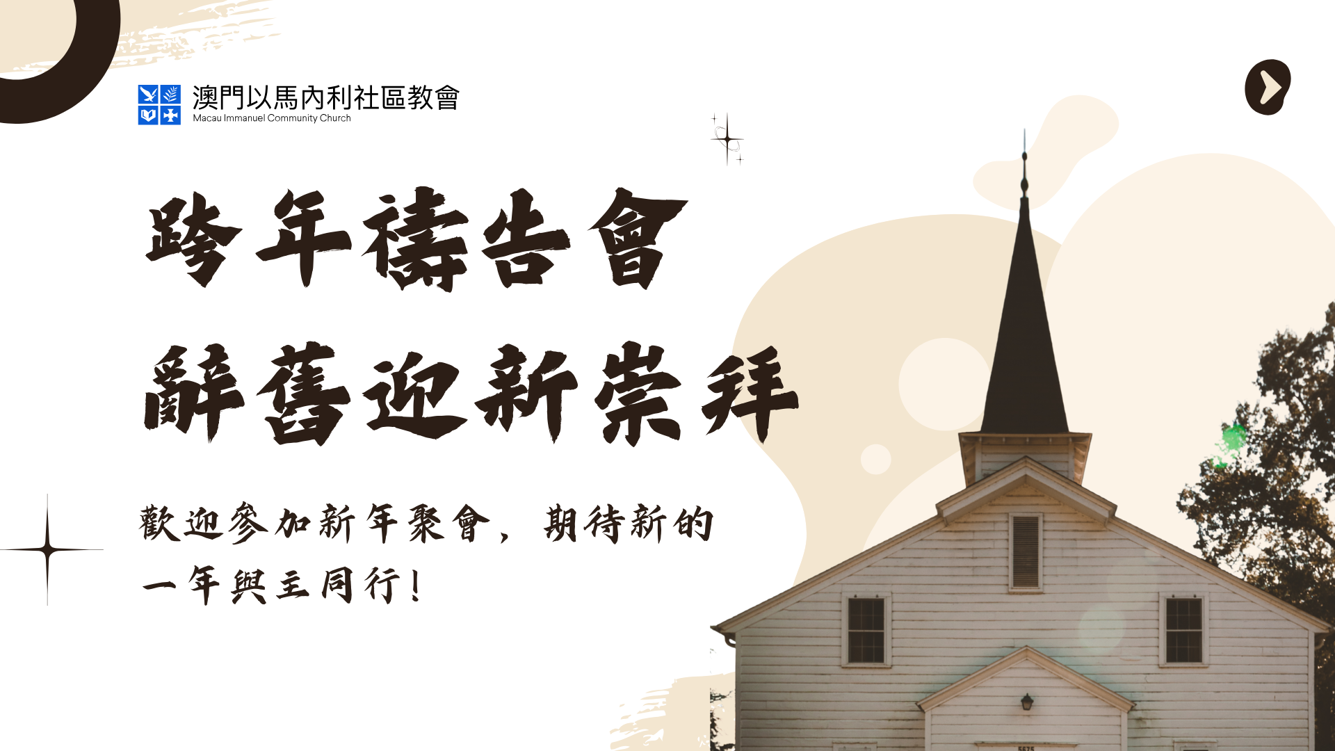 歡迎參加2026年新年聚會,期待新的一年與主同行!